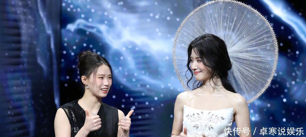 红毯现场的跨圈互动更让这份美好锦上添花。当卢昱晓与跳水奥运冠军陈芋汐同框时,她主动牵起对方的手转圈互动,在听到主持人介绍陈芋汐2025年赛事全胜战绩时,立刻双手点赞致敬,被网友赞“专业尊重不分行业”。这段“神仙联动”的视频单日播放量破千万,网友留言“柔美与坚韧的碰撞太好磕”,为造型热度再添一把火。此外,后台还发生了一段暖心小插曲,卢昱晓因头饰体积较大转身时不慎碰到艺人王玉雯,她立刻温柔道歉,对方微笑回应,展现了女明星之间的友好氛围,让网友直呼“美人配美德,太圈粉”。