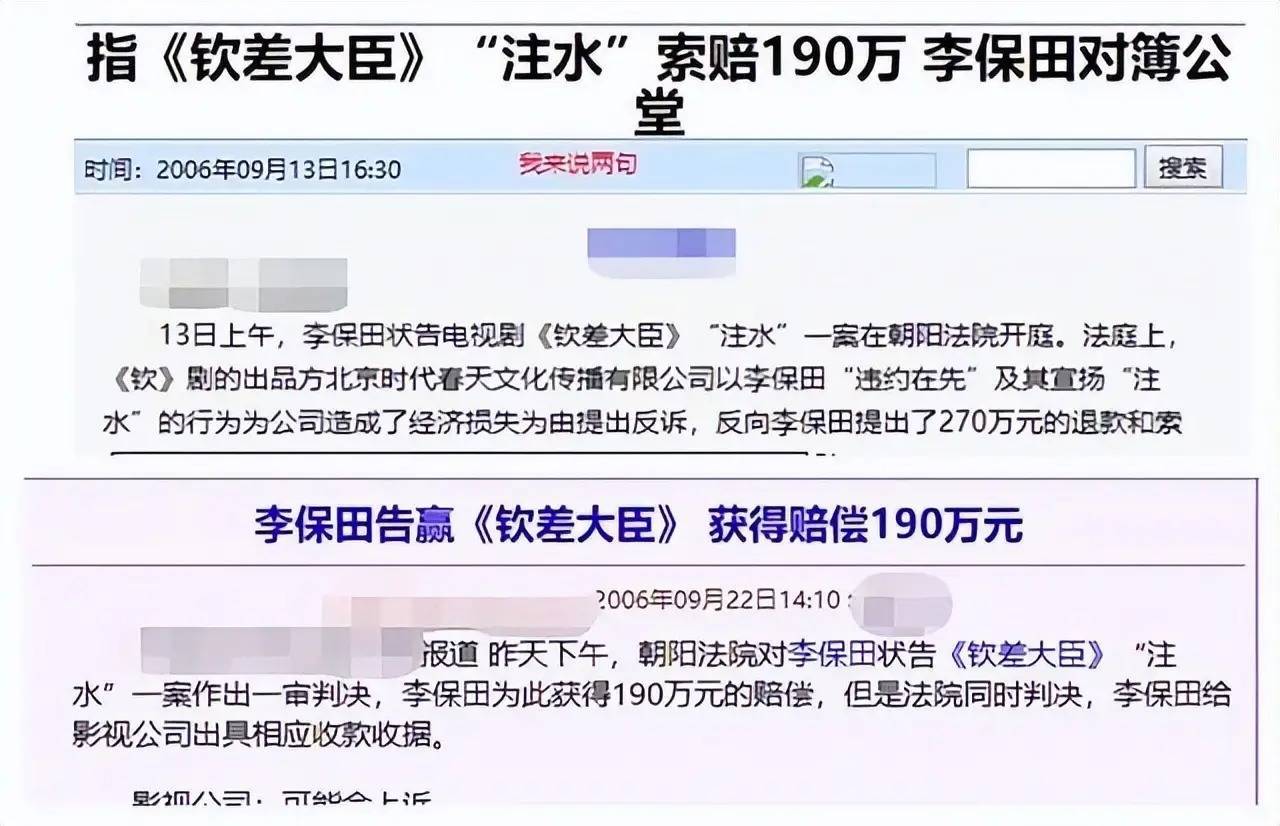 2006年,李保田告赢《钦差大臣》将原本30集拉长到33集,获赔190万。而输了官司的出品方,炮轰李保田是“戏霸”。他跟刘墉一样,都是倔驴!